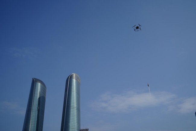 据悉,在此次验证中,从“黑飞”发现到捕获全程自动运行,无需人工介入。平台发现“黑飞”目标后,AI立即进行轨迹预测与威胁判断,并自主调度“安保无人机”起飞。“安保无人机”升空后,依托机载智能算法,实时锁定目标、跟踪目标,通过气动装置发射特制网,将“黑飞”无人机凌空捕获并带回返航。